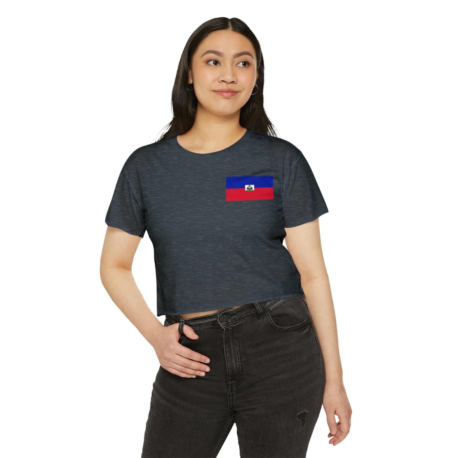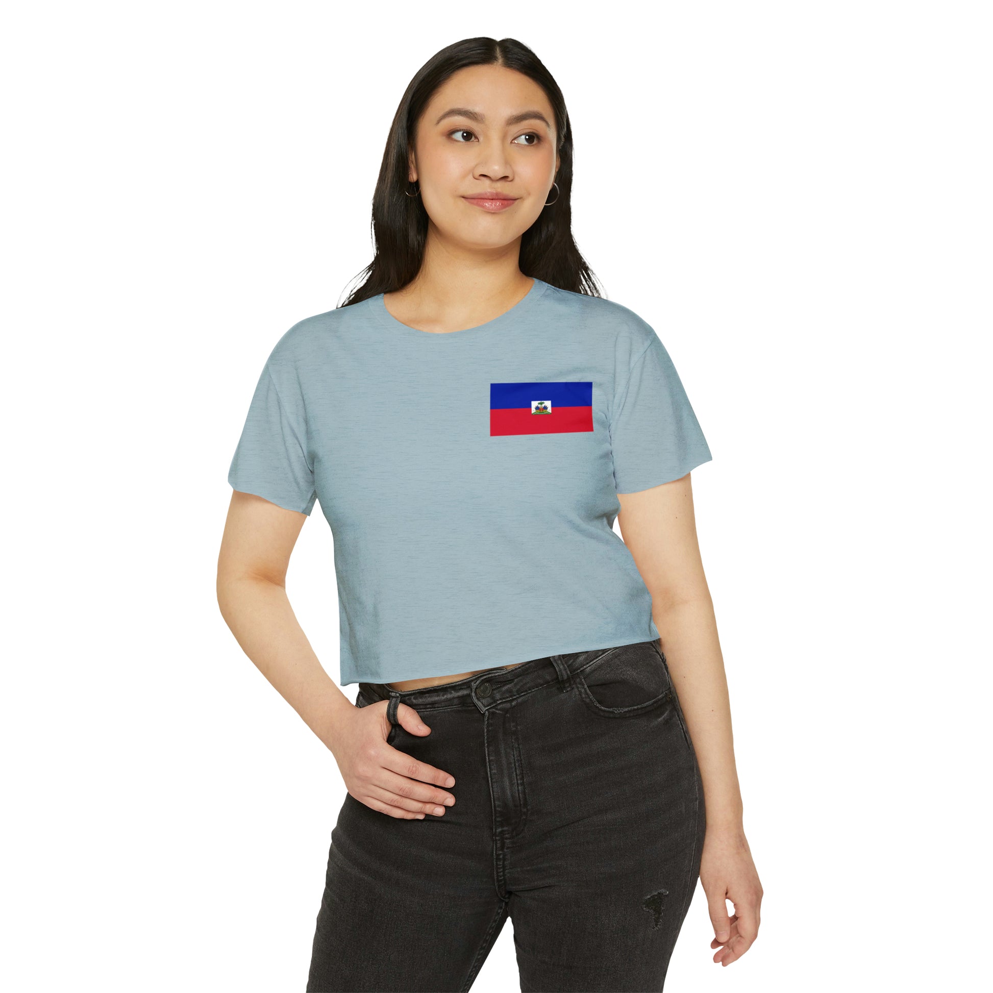 Get everyone ready for the festival season with beautiful custom crop tops. This one's made of 65% polyester, 35%-cotton blend – soft and durable enough to last the whole party weekend. It has that effortlessly stylish fit with raw-edge sleeves and hems and a cropped, relaxed fit.